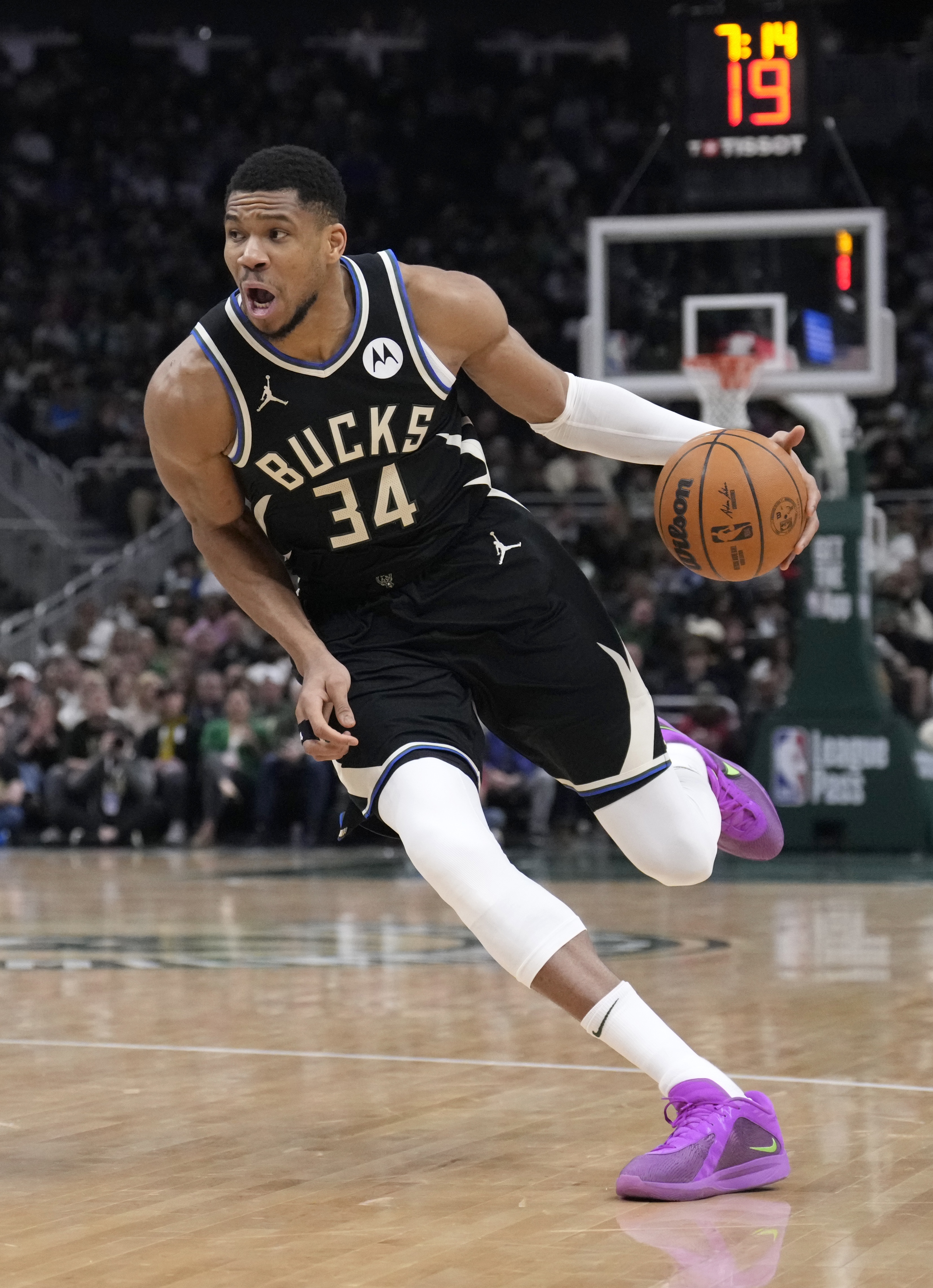 在跑回后場時,阿德托昆博轉(zhuǎn)身向密爾沃基的觀眾展示了他標(biāo)志性的兇狠表情,這種表情通常只在他完成震撼全場的扣籃或蓋帽時出現(xiàn)。