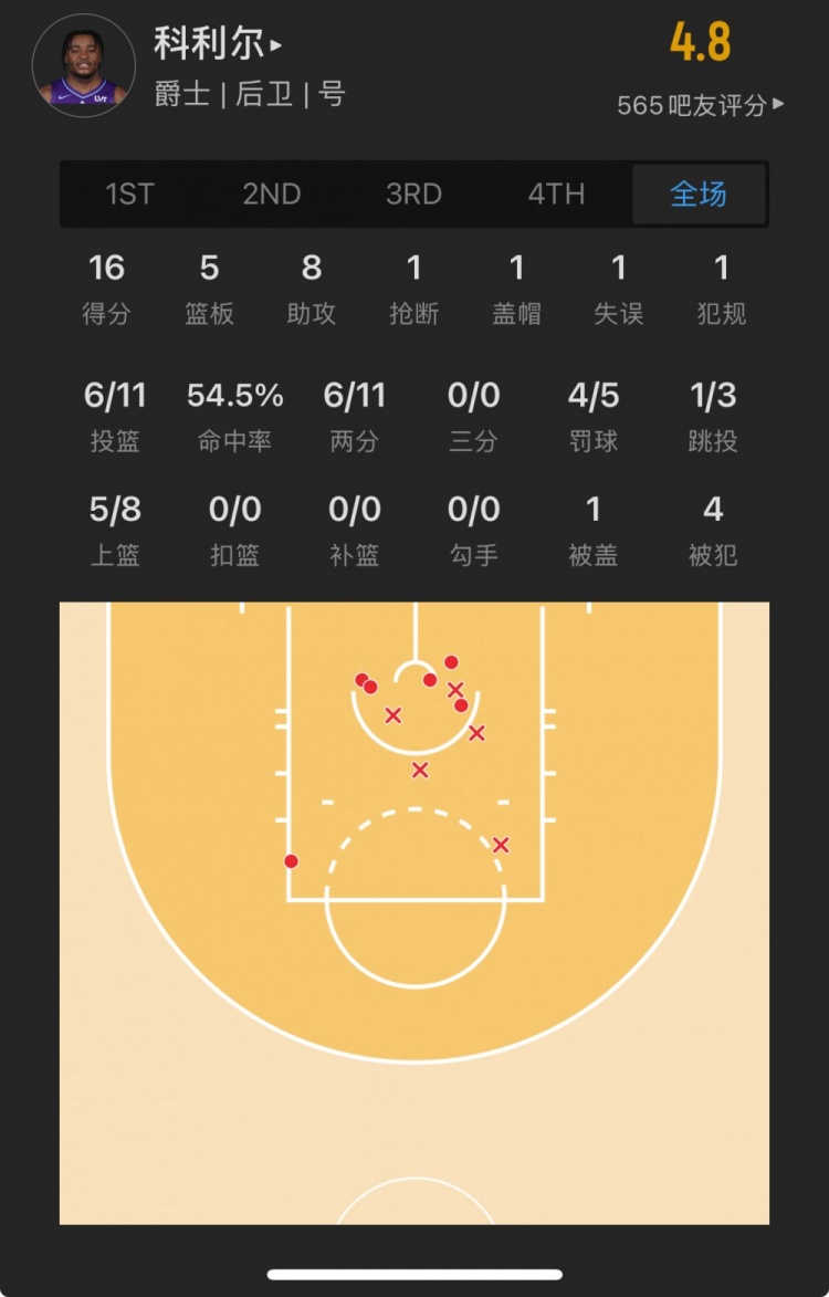 爵士29號秀 以賽亞-科利爾 登場36.1分鐘