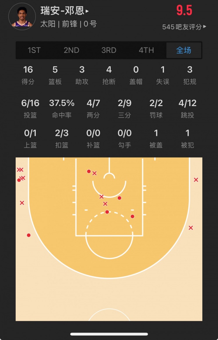 太陽28號秀 瑞安-鄧恩 登場33.5分鐘