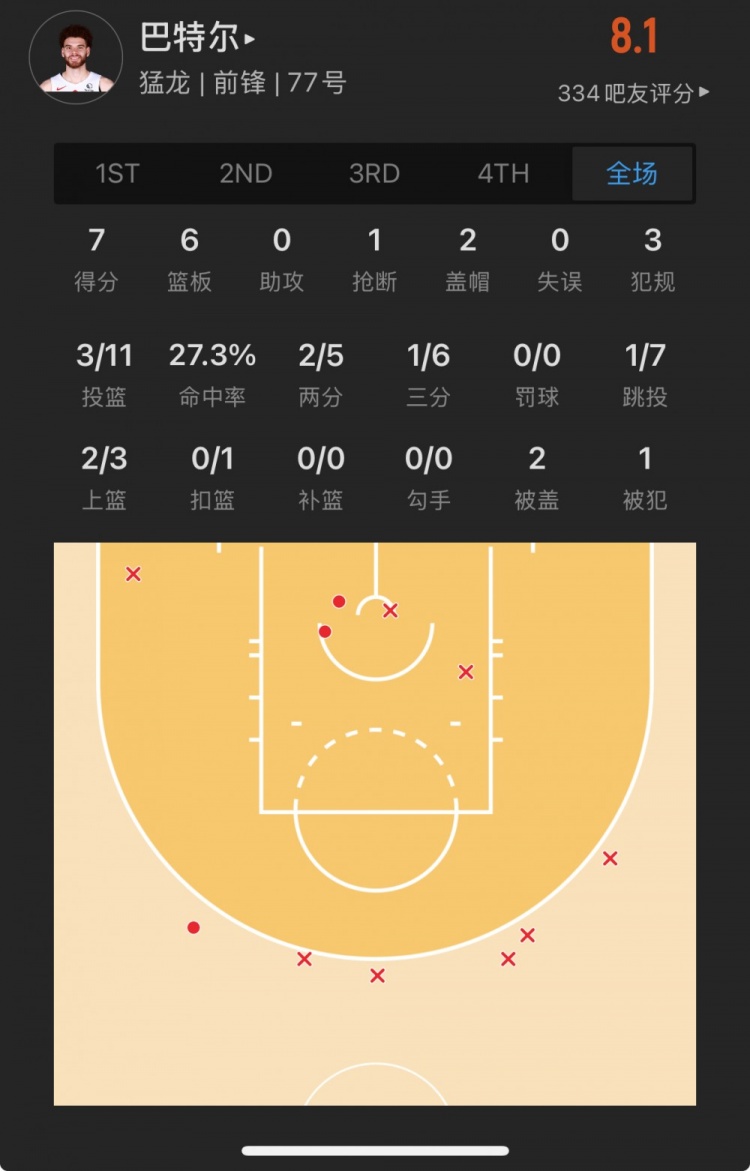 猛龍落選秀 賈米森-巴特爾 登場36.5分鐘