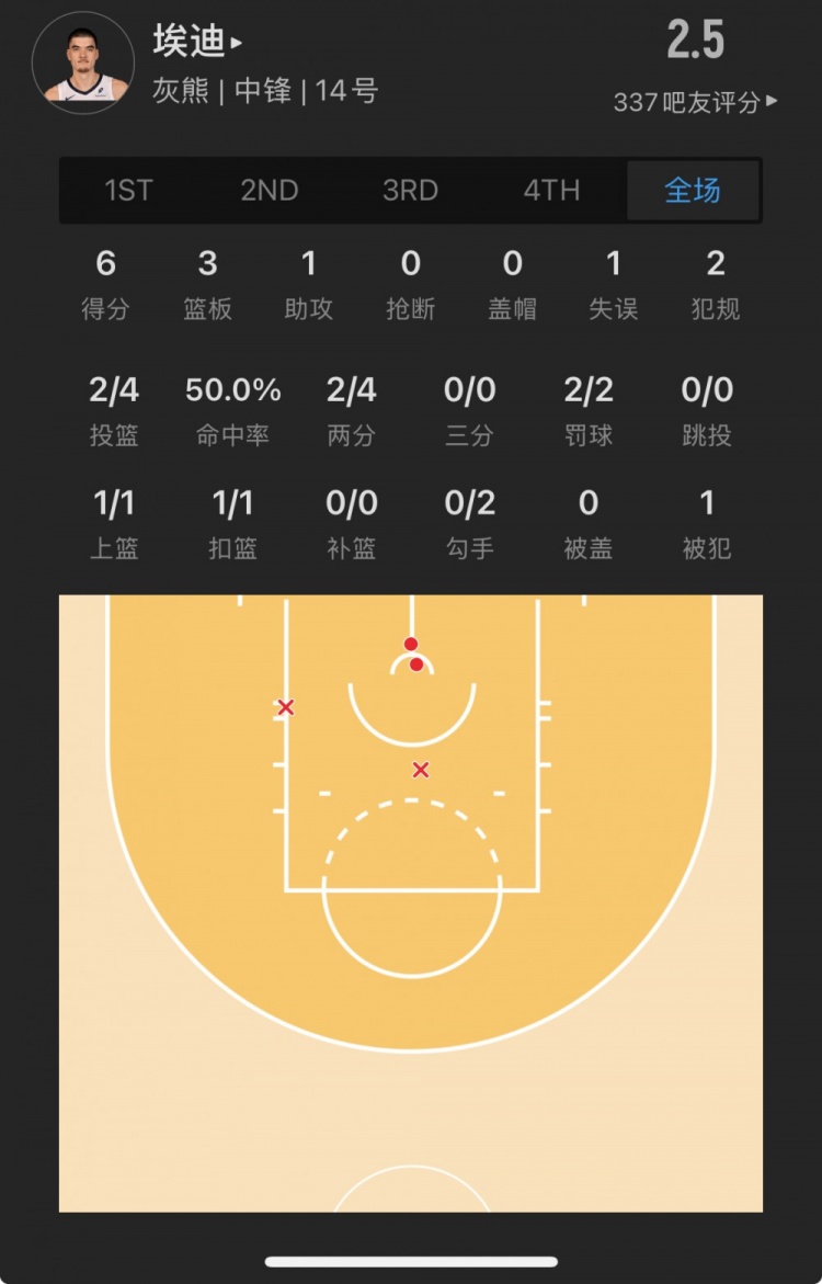 灰熊9號秀 扎克-埃迪 登場10.8分鐘