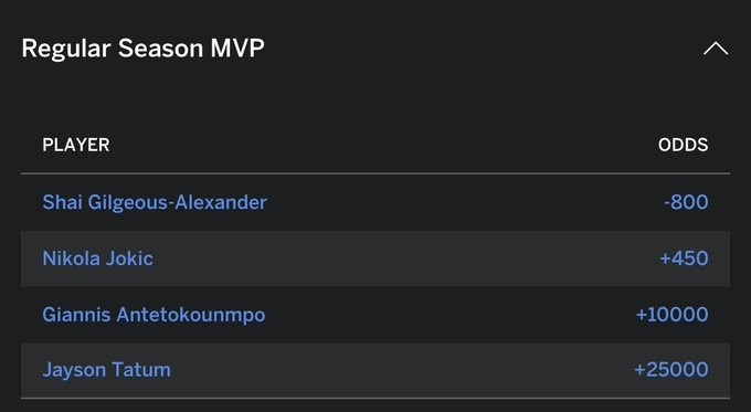大局已定?今日比賽結束后 MVP賠率SGA-800斷層領先 約基奇+450