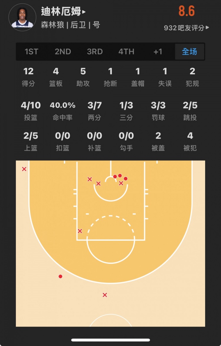 森林狼8號秀 羅布-迪林厄姆 登場25.6分鐘