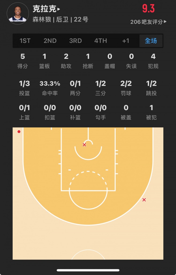 森林狼23年53號秀 杰倫-克拉克 登場28.6分鐘