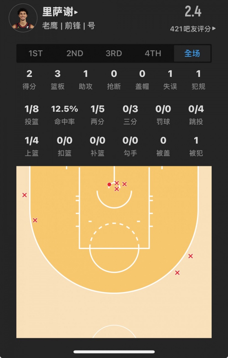 老鷹狀元秀 扎卡里-里薩謝 登場26.5分鐘