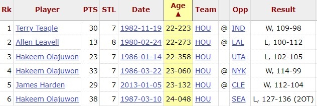 阿門這樣一來,阿門(22歲51天)成為了火箭隊史上單場送出7+搶斷最年輕的球員,此前最年輕紀(jì)錄是特里-蒂格的22歲223天。