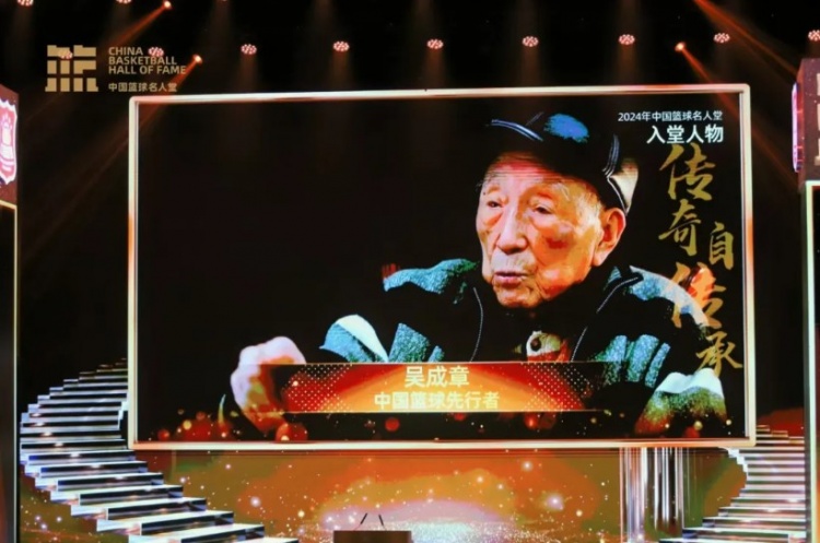 現(xiàn)年101歲的吳成章老人是李震中先生1948年奧運(yùn)會的隊友,雖然無法親臨現(xiàn)場,他仍通過視頻表達(dá)了自己進(jìn)入名人堂的喜悅。吳老之子吳忻水代父親領(lǐng)取名人堂徽章,并分享了他們之間的“父子籃球”軼事。