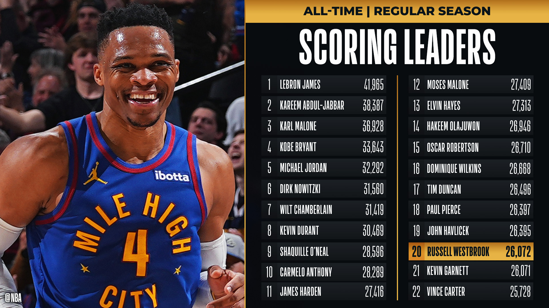 >>恭喜????威少生涯總得分超越加內(nèi)特 升至NBA歷史第20位!NBA歷史得分榜最新情況"/>