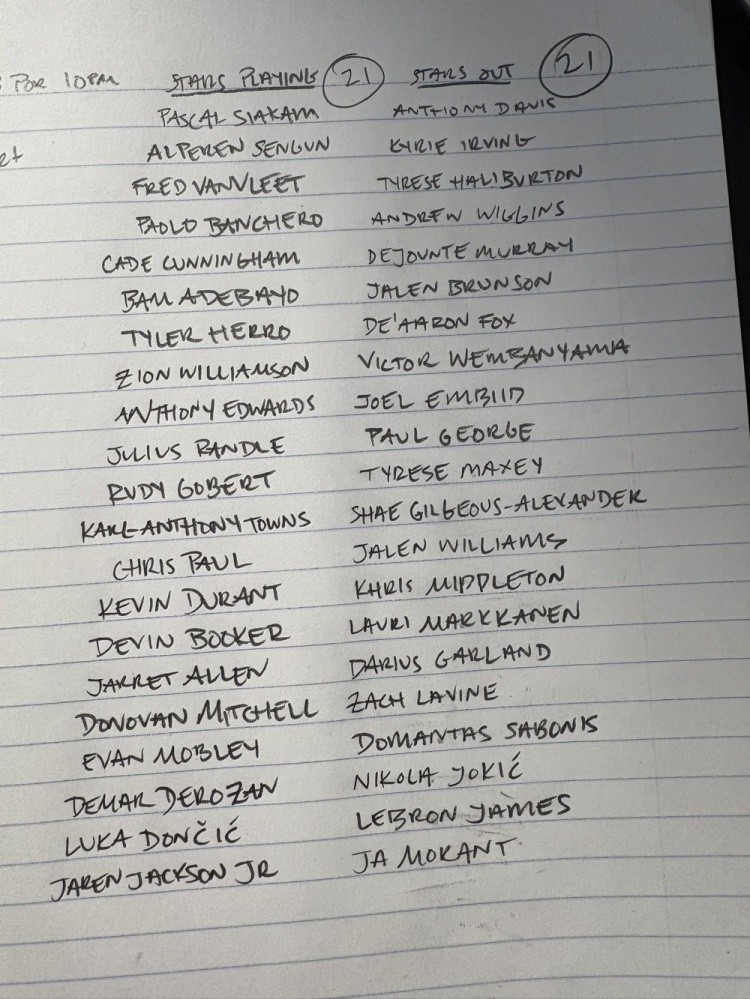 有21位球星上場(chǎng)|有21位球星未上場(chǎng)