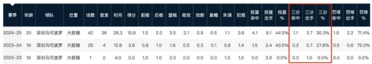 雖然標(biāo)榜的是“空間型四號位”,但有解說會在提到王浩然時用“非空間點”來形容他,他像MPJ那樣大跳投,但卻沒有MPJ的準(zhǔn)度,30.3%的三分球命中率在小球時代確實是不夠看......