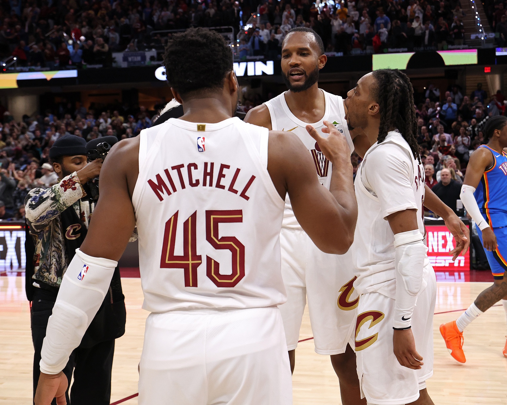 米切爾描述了周五對(duì)陣尼克斯時(shí)他所在的第二陣容,當(dāng)時(shí)他與奧科羅、韋德、亨特和莫布里一起上場(chǎng),他打控球后衛(wèi)——這是一個(gè)身材高大、技術(shù)也很強(qiáng)的陣容,同時(shí)還具備三分威脅。他還說(shuō),加蘭在對(duì)陣尼克斯時(shí) “獲得了兩次空位上籃機(jī)會(huì)”,因?yàn)樘扑巩?dāng)時(shí)好像在想,“哦,糟了,我得去底角補(bǔ)防。”