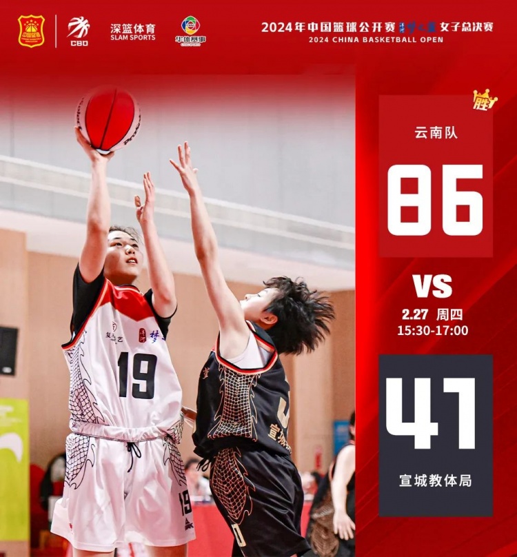 兩連勝的云南隊(duì),本輪對(duì)陣實(shí)力相對(duì)較弱的宣城教體局。上半場(chǎng),云南隊(duì)打出一波11-0的得分潮。落后的宣城教體局在技術(shù)上稍顯稚嫩,半場(chǎng)結(jié)束,云南隊(duì)43-14宣城教體局。下半場(chǎng),宣城教體局命中率有所提高,但面對(duì)云南隊(duì)還是存在很大差距,最終,云南隊(duì)86-41戰(zhàn)勝宣城教體局。