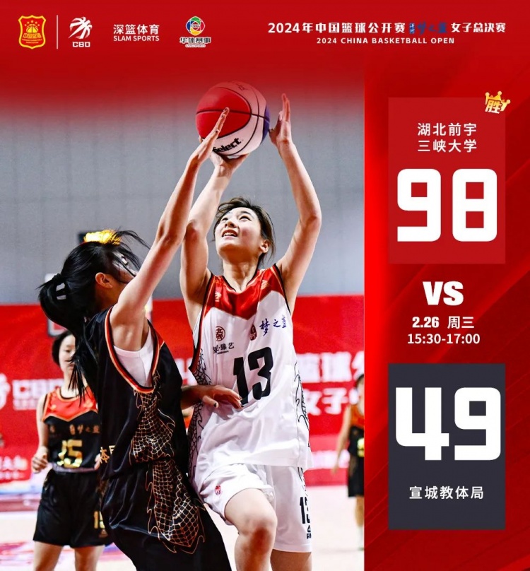 上半場,湖北前宇三峽大學(xué)11號劉欣怡、2號張歡分別命中兩分,幫助球隊(duì)取得領(lǐng)先。宣城教體局6號張紫涵扳回兩分后,湖北前宇三峽大學(xué)在技術(shù)和經(jīng)驗(yàn)上的優(yōu)勢逐漸顯露,打出一波8-0的得分潮。半場結(jié)束,湖北前宇三峽大學(xué)53-21領(lǐng)先宣城教體局。易邊再戰(zhàn),宣城教體局雖然頑強(qiáng)拼搏,但年輕小將在實(shí)力上和對手還是存在著差距,將分差越拉越大。最終,湖北前宇三峽大學(xué)98-49戰(zhàn)勝宣城教體局。