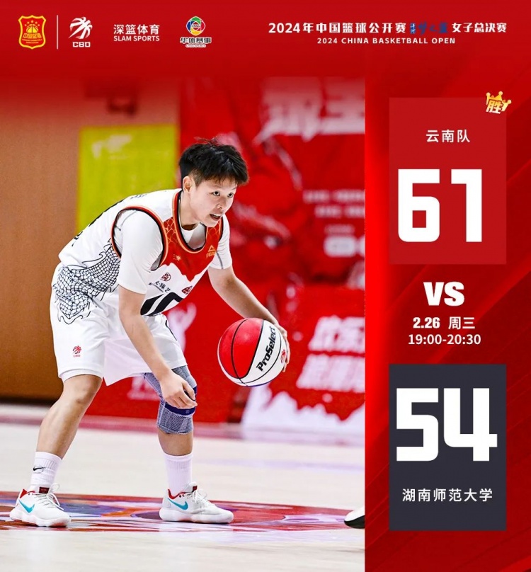 云南隊(duì)和湖南師范大學(xué)在本輪相遇,實(shí)力相當(dāng)?shù)膬芍蜿?duì)打得相對膠著。上半場,10平后,湖南師范大學(xué)30號趙詩雨兩分命中,隨后6號沈思榆外線再貢獻(xiàn)一個(gè)三分球,15-10湖南師范大學(xué)超出。云南隊(duì)依靠6號羅菲和14號娜漢的進(jìn)攻緊咬比分。半場結(jié)束云南隊(duì)落后湖南師范大學(xué)1分。下半場,兩隊(duì)依舊難解難分。在云南隊(duì)幾次外線得分實(shí)現(xiàn)反超,14號娜漢外投內(nèi)突,連續(xù)得分,云南隊(duì)士氣大漲,最終云南隊(duì)61-54戰(zhàn)勝湖南師范大學(xué)。