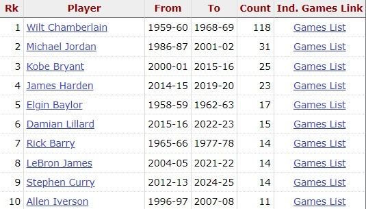 哈登生涯第24場常規(guī)賽50+ 歷史第4多 僅次于張伯倫&喬丹&科比