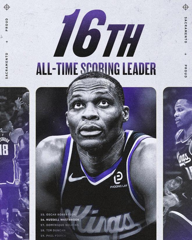 此役,威少還創(chuàng)下了紀(jì)錄。得到本場第11分之際,威少的得分超越名宿多米尼克·威爾金斯,升至歷史得分榜第16位。