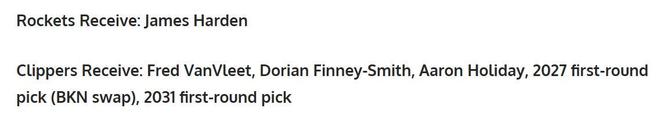 火箭得到:哈登;