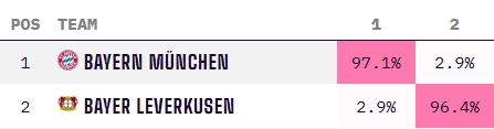 只剩西甲有懸念??五大聯(lián)賽奪冠概率:利物浦99%拜仁97%巴黎100%