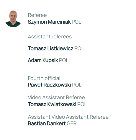 助理裁判:托馬斯-利斯特凱維奇(波蘭)、亞當(dāng)-庫(kù)普西克(波蘭)