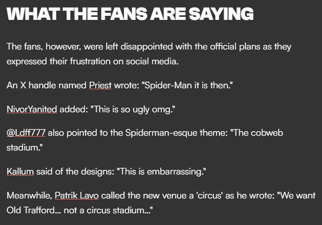 球迷吐槽曼聯(lián)新主場設計方案:太難看了!擱這整馬戲團呢?