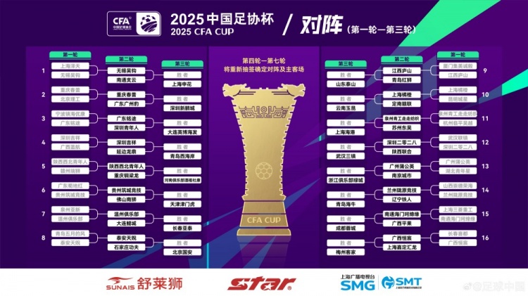 3月16日訊 2025賽季中國足協(xié)杯第1輪結(jié)束爭奪,16支晉級球隊產(chǎn)生,他們在第二輪將面對中甲球隊。