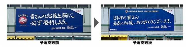 而在擊敗巴林隊獲得世界杯入場券后,看板內容改成:“日本的各位,感謝你們最棒的聲援?!?/p>