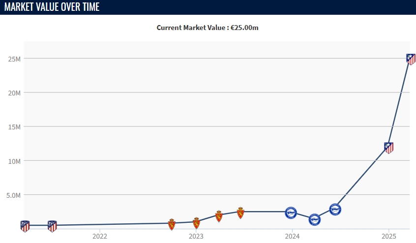 03月21日訊 今日德轉(zhuǎn)更新西甲球員身價(jià),馬競(jìng)主帥西蒙尼的三兒子朱利亞諾-西蒙尼身價(jià)上漲1300萬(wàn)歐,從原先的1200萬(wàn)漲至2500萬(wàn)歐元。