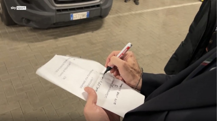 在首回合于米蘭進(jìn)行的比賽期間,布馮時(shí)間很少,他非常禮貌地為無(wú)法接受采訪(fǎng)道歉,因此在次回合于多特蒙德進(jìn)行的比賽結(jié)束后,記者Fabian Schreiner用一張印有以意大利語(yǔ)提出的三個(gè)問(wèn)題的A4紙來(lái)請(qǐng)布馮回答。這三個(gè)問(wèn)題都是一般疑問(wèn)句,分別是: