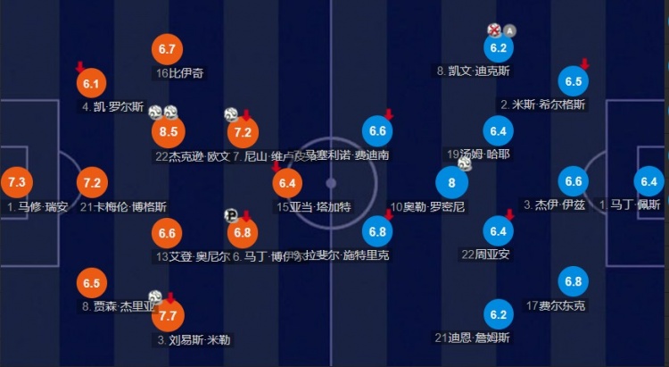 澳大利亞玩的就是效率,控球率、進(jìn)攻三區(qū)進(jìn)入次數(shù)比印尼還少,可比分卻是大勝(藍(lán)色方為印尼)