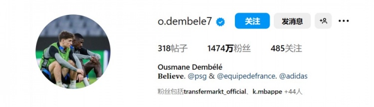 登貝萊已經(jīng)將他的社媒頭像換成和加維的合影,兩人在巴薩有過共事經(jīng)歷。本賽季,登貝萊為巴黎出戰(zhàn)37次打進(jìn)30球。