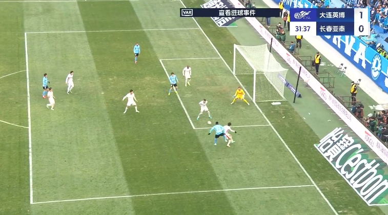 19歲朱鵬宇中超處子球!大連英博1-0領(lǐng)先長春亞泰,馬萊萊助攻