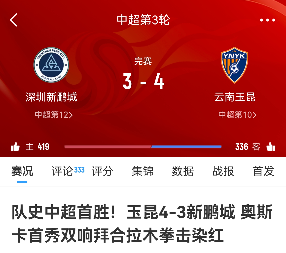 03月29日訊 剛剛過去的中超第3輪誕生了無數(shù)名場面,多位小將嶄露頭角,進球大戰(zhàn)層出不窮,山東泰山在倒數(shù)第二場貢獻了讓3追4的經(jīng)典戰(zhàn)役。