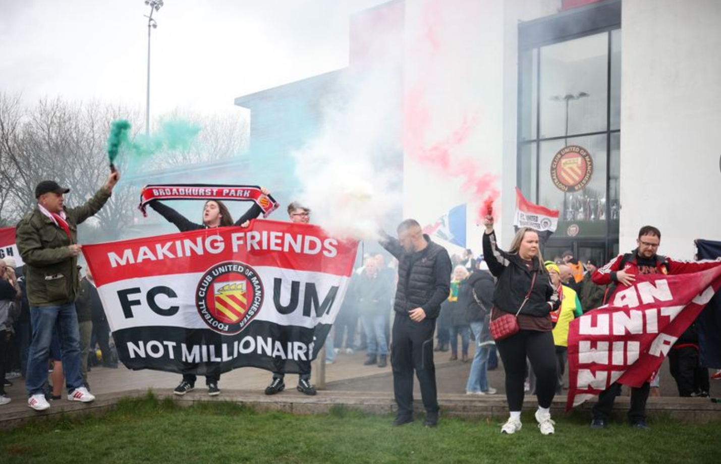 曼聯(lián)重要球迷組織1958近期持續(xù)在老特拉福德球場外抗議格雷澤家族所有權,以及其他影響球迷文化的議題,今日兩大球迷群體共同表達對美資持有曼聯(lián)的反對立場。此外,曼聯(lián)球迷1958宣布將在下周日在老特拉福德球場與曼城的德比中舉行靜坐示威。