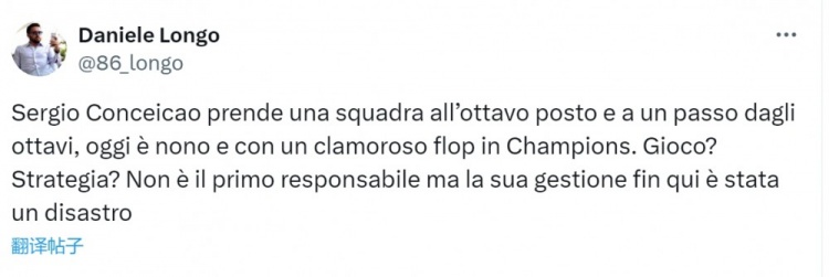 3月31日訊 米蘭跟隊(duì)記者隆戈社媒發(fā)文,批評(píng)了孔塞桑在米蘭的執(zhí)教表現(xiàn)。