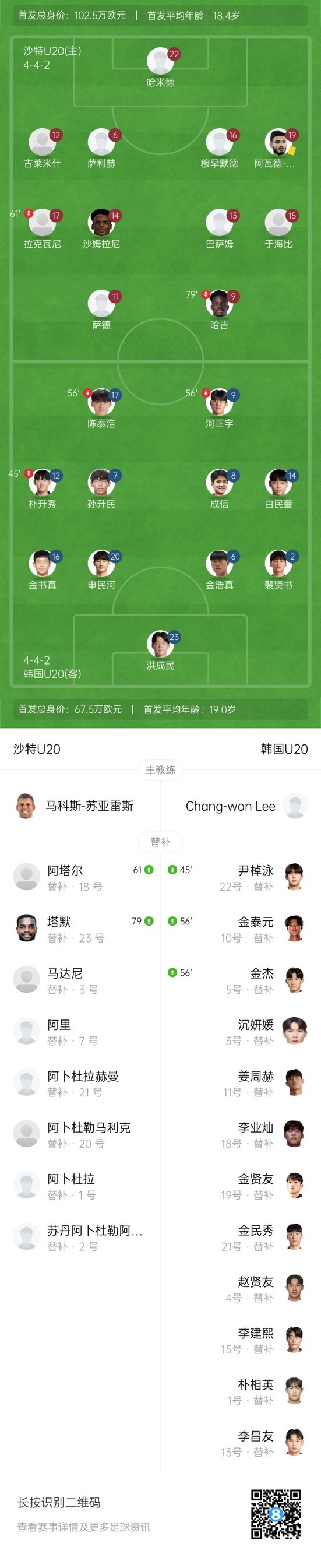 下半場(chǎng)補(bǔ)時(shí)3分鐘,U20沙特0-0韓國(guó)U20。