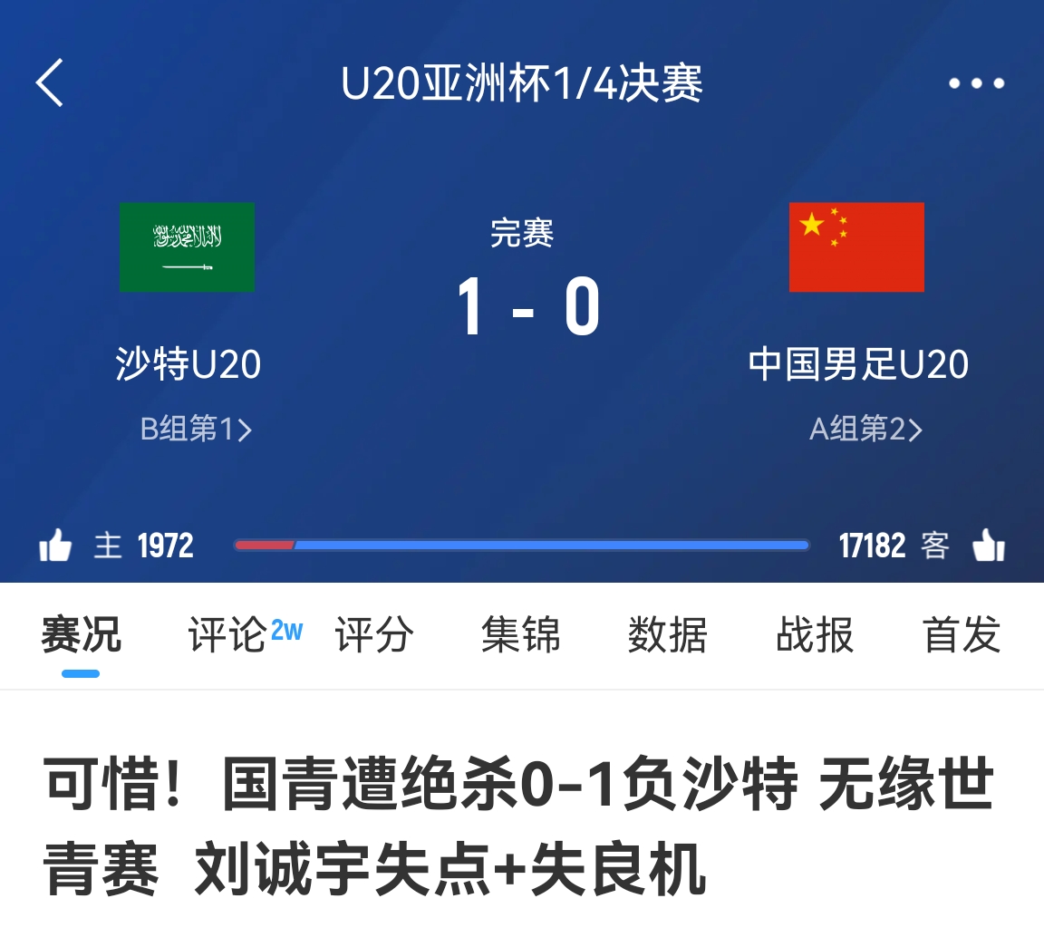 不敵冠亞軍..國(guó)青亞青賽2勝2負(fù)1-2袋鼠0-1沙特 沙澳最終晉級(jí)決賽