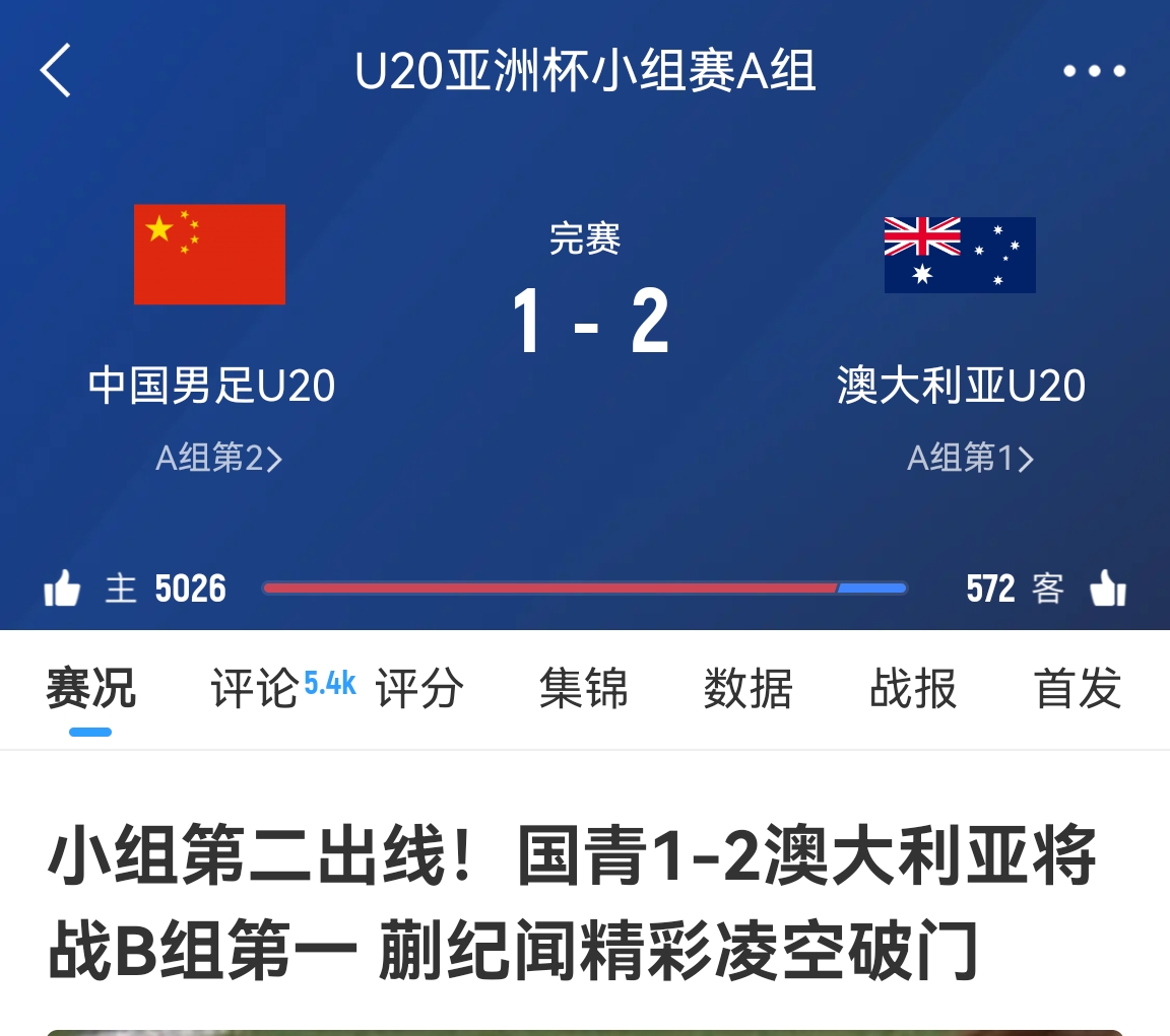 而在本屆亞青賽中,國(guó)青正是輸給了晉級(jí)決賽的兩支球隊(duì)。在小組賽中,國(guó)青1-2不敵澳大利亞U20,無(wú)緣小組第一,在隨后的1/4決賽中,國(guó)青又0-1不敵沙特U20,止步8強(qiáng),同時(shí)也失去了今年世青賽的門(mén)票。