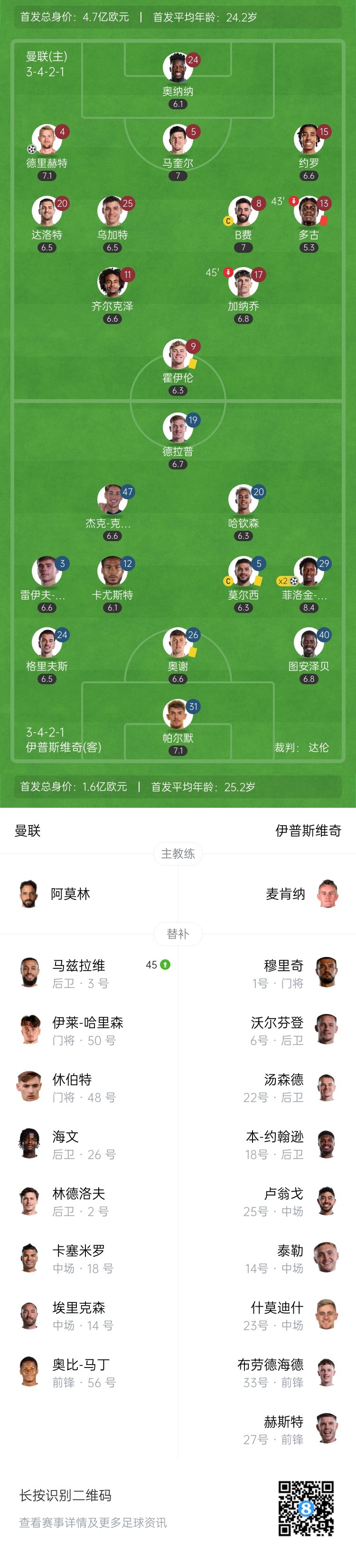 第4分鐘,曼聯(lián)后場(chǎng)重大失誤!奧納納出擊,多古回傳送空門(mén)大禮!菲洛金輕松打進(jìn)空門(mén)!曼聯(lián)0-1落后伊普斯維奇↓
