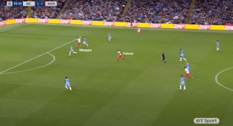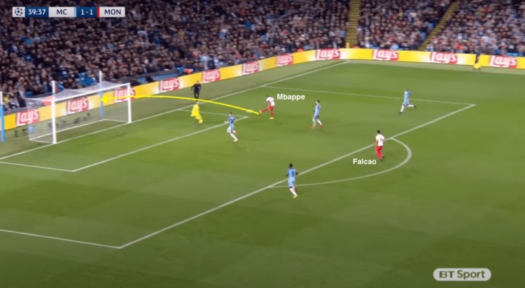 法爾考縱深跑位,為姆巴佩創(chuàng)造出了進攻空間,并最終破門得分。