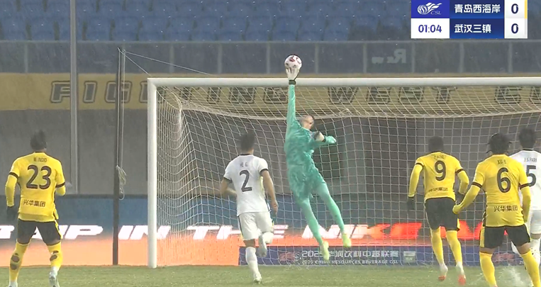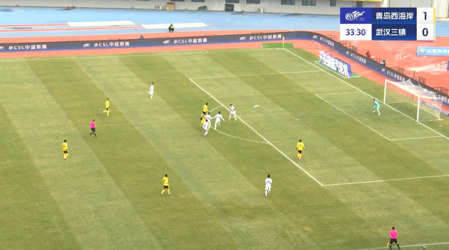 上半場補(bǔ)時(shí)3分鐘,青島西海岸1-0武漢三鎮(zhèn)。