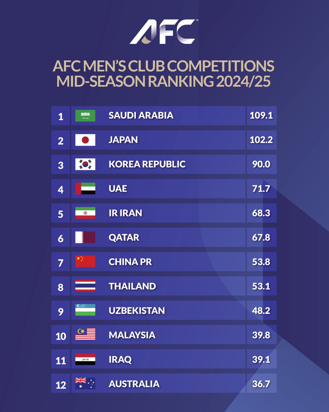 03月04日訊 亞冠精英聯(lián)賽賽前,亞足聯(lián)公布了季中各國(guó)聯(lián)賽積分,中超被泰超追分,僅領(lǐng)先0.7分。