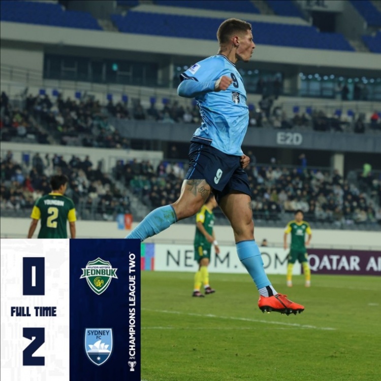 亞冠2聯(lián)賽1/4決賽首回合:全北現(xiàn)代0-2悉尼,廣島三箭6-1獅城水手