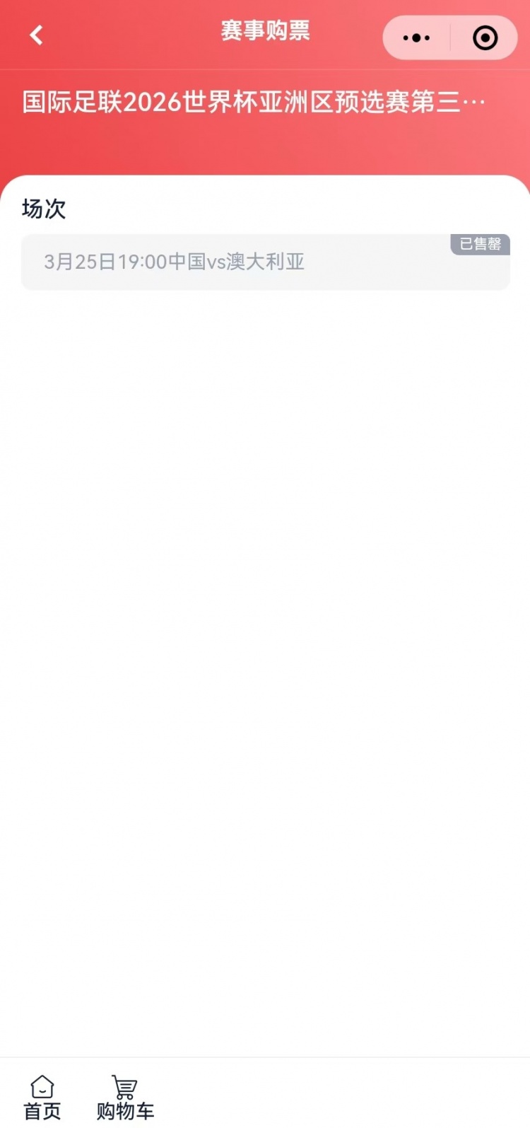 3月7日訊 國足將于3月25日于世預(yù)賽18強(qiáng)戰(zhàn)主場迎戰(zhàn)澳大利亞,本場球票在今日17點(diǎn)開售,多個(gè)平臺迅速售罄。